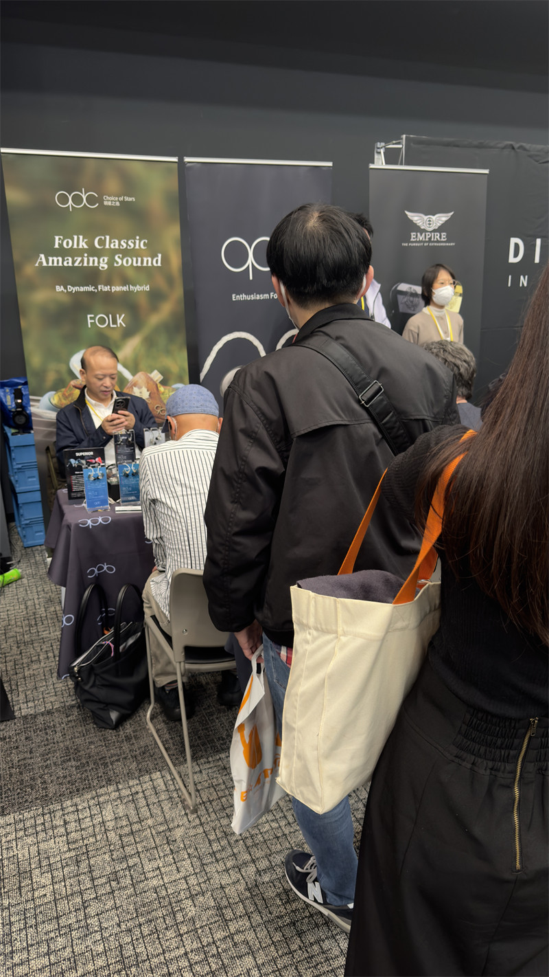 | qdc展台被海外发烧友的热情挤爆了,一直都是排队状态,但好听的耳机总是值得等待。 |