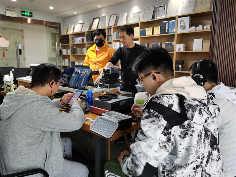 | 大家互相分享自己对新品在音质、舒适度和性价比等方面的体验感,沉浸于新品8Pro和SUPERIOR带来的惊喜听感, 也惊讶于旗舰变色龙V14带来的震撼感,大家在此刻共同追求音乐的极致享受。 |